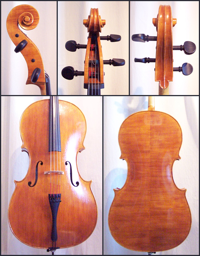 Le modèle de ce violoncelle a été relevé d'un David Tecchler 1725, joué dans l'Orchestre symphonique de Chicago. L'original a été recoupé dans le bout supérieur, mais pas le bas, ce qui rend cette conception facile à jouer tout en conservant beaucoup de volume pour une profondeur de registre superieur et sonoreux. Ceci est un violoncelle pour ceux qui aiment explorer toutes les possibilités de ton et de timbre, avec une projection assez précis pour des solos, et la capacité de se fondre dans l'orchestre avec facilité.